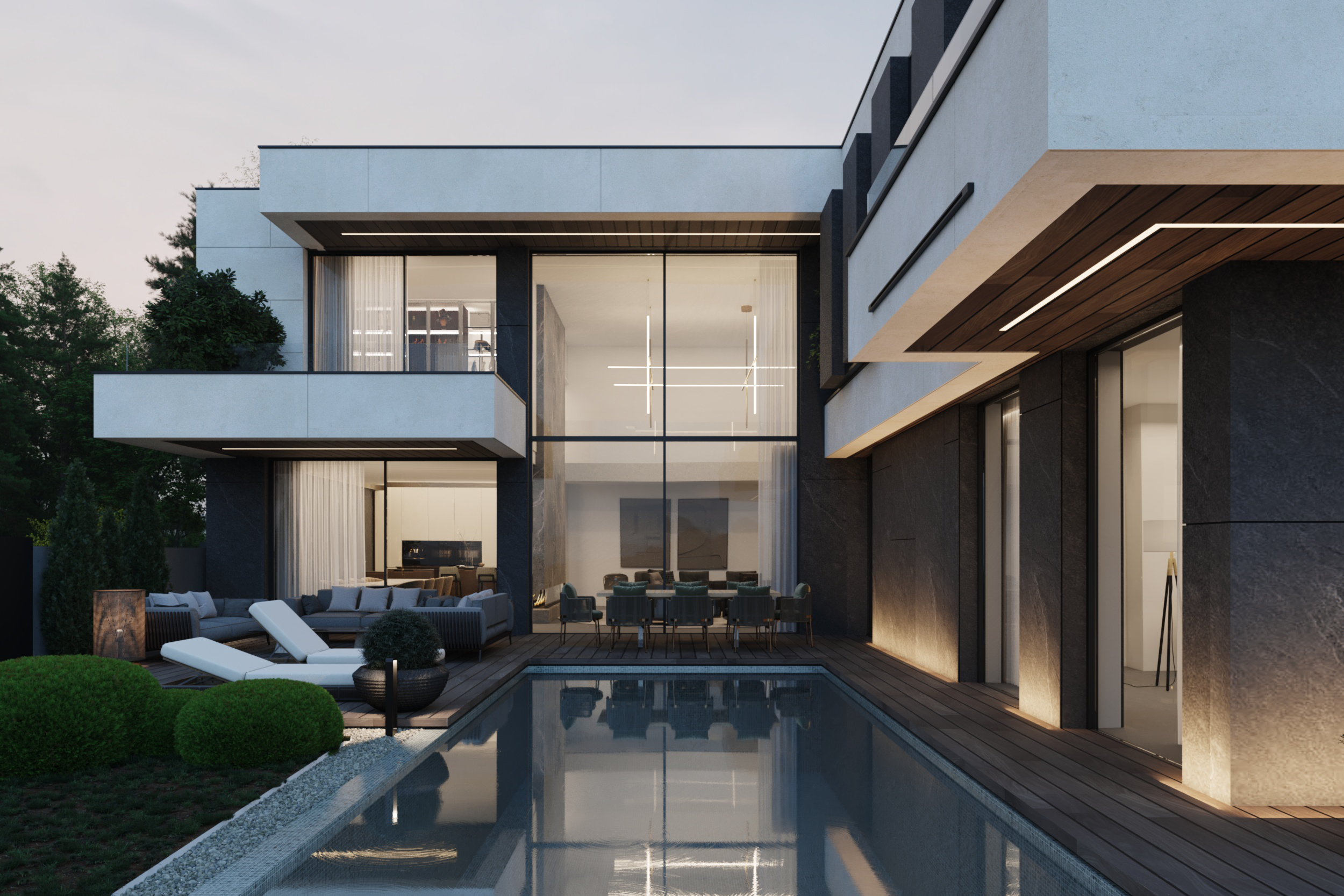 Kjo ville ka etazhitet prej 2 katesh, Zona private dhe ajo e perbasahket jane te ndara ne menyre te denje . Materialet e perdorura jane innovative si Fasada e ventiluar, xhamat me Madhesi jashte standardit per te optimizuar perjetimin e arkitektures.